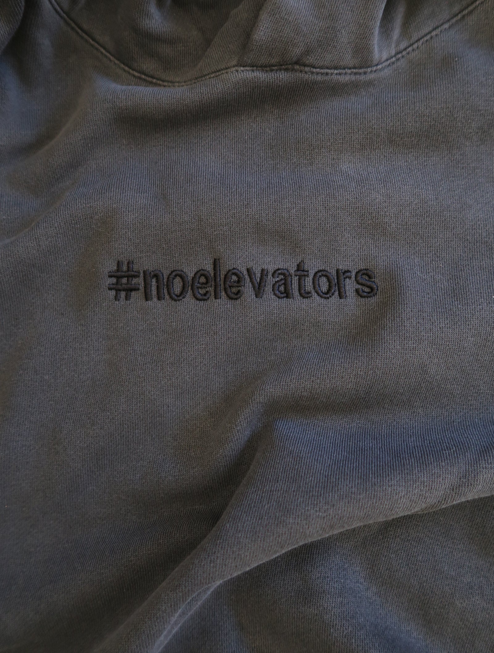 The new #noelevators hoodie features a soft heavyweight blend, a structured fit, and signature branding that reinforces the brand’s core message: there are no shortcuts to the top. Take the stairs.
